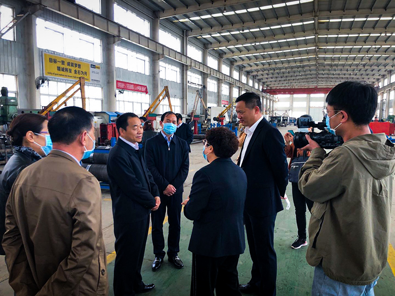 馬四海副主席一行實地察看了企業(yè)廠區(qū),邊走邊詢問企業(yè)疫情防控、生產(chǎn)恢復(fù)、設(shè)備使用、產(chǎn)品質(zhì)量等情況。對該公司研發(fā)的科技創(chuàng)新產(chǎn)品,馬四海仔細詢問產(chǎn)品研制、設(shè)備性能、應(yīng)用場景和存在困難等情況,鼓勵企業(yè)加快項目研發(fā)和生產(chǎn),。在生產(chǎn)車間,馬四海副主席認(rèn)真察看了各生產(chǎn)設(shè)備和防護設(shè)備產(chǎn)品,觀摩了液壓油缸生產(chǎn)過程,詳細了解每一道生產(chǎn)工藝。