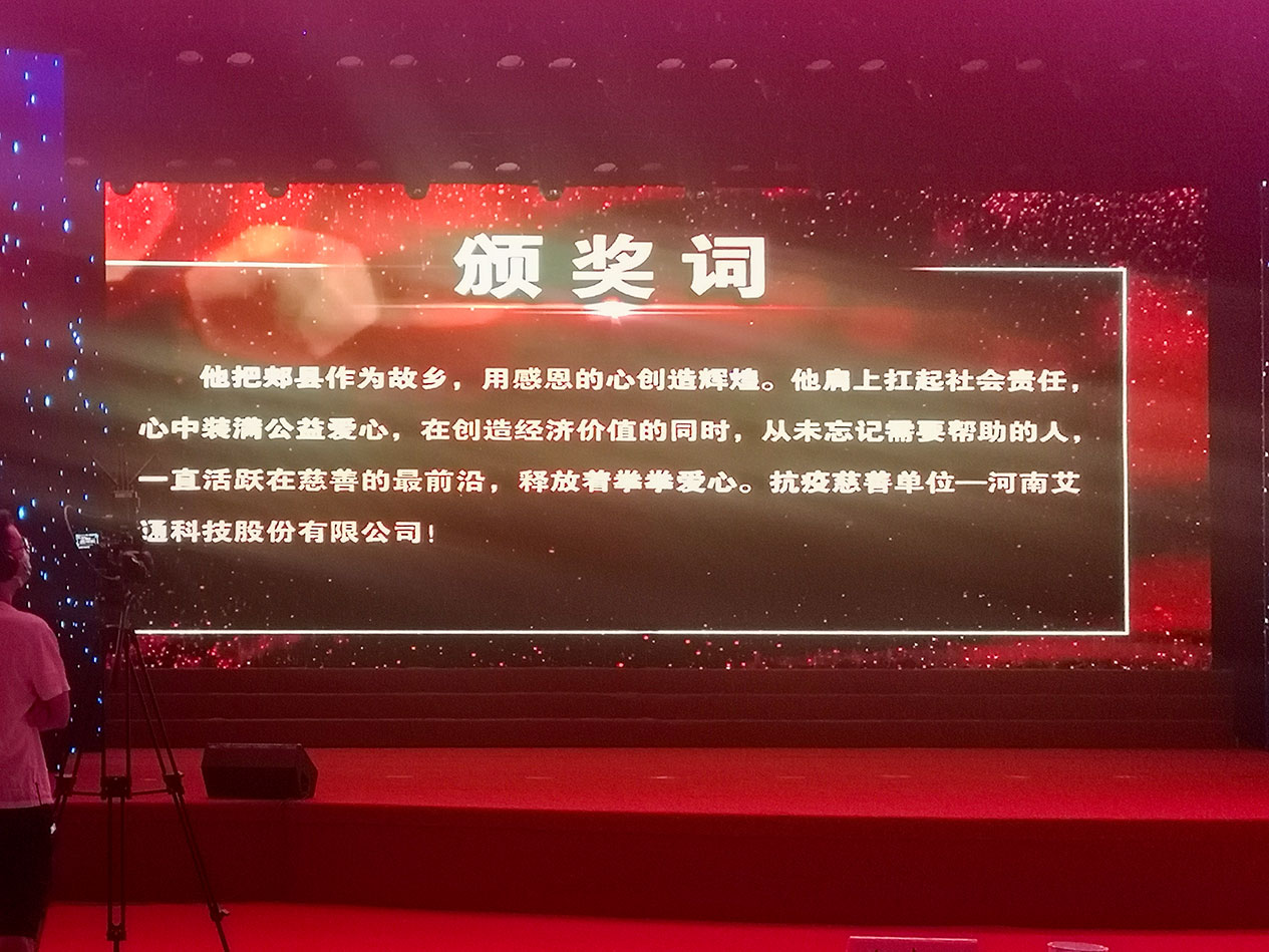 9月5日下午,在郟縣會(huì)議中心隆重舉行慶祝第五個(gè)“中華慈善日”慈善活動(dòng)。河南省慈善總會(huì)副會(huì)長(zhǎng)盛國(guó)民,河南省慈善總會(huì)副秘書(shū)長(zhǎng)和占鶴,平頂山市慈善總會(huì)會(huì)長(zhǎng)高德領(lǐng),郟縣縣委書(shū)記丁國(guó)浩,平頂山市慈善總會(huì)副會(huì)長(zhǎng)劉紹卿、周俊范,郟縣縣領(lǐng)導(dǎo)邱永剛、魯長(zhǎng)法、何留忠、吳紅強(qiáng)、周慧敏,郟縣慈善協(xié)會(huì)會(huì)長(zhǎng)肖根勝等出席活動(dòng),并分別為抗疫慈善單位和個(gè)人頒獎(jiǎng)。公司副董事長(zhǎng)趙超越、副總經(jīng)理南海龍受邀參加了慈善頒獎(jiǎng)活動(dòng)?;顒?dòng)現(xiàn)場(chǎng),對(duì)在今年疫情爆發(fā)以來(lái)河南艾通科技股份有限公司捐款捐物達(dá)43.5萬(wàn)元的獻(xiàn)愛(ài)心行動(dòng),給予了充分肯定。公司全體員工要珍惜這個(gè)榮譽(yù)稱號(hào),在創(chuàng)造經(jīng)濟(jì)價(jià)值的同時(shí),保持捐獻(xiàn)愛(ài)心的熱情,不忘需要幫助的人,及時(shí)伸出援助之手,充分彰顯公司的社會(huì)責(zé)任與為民情懷。