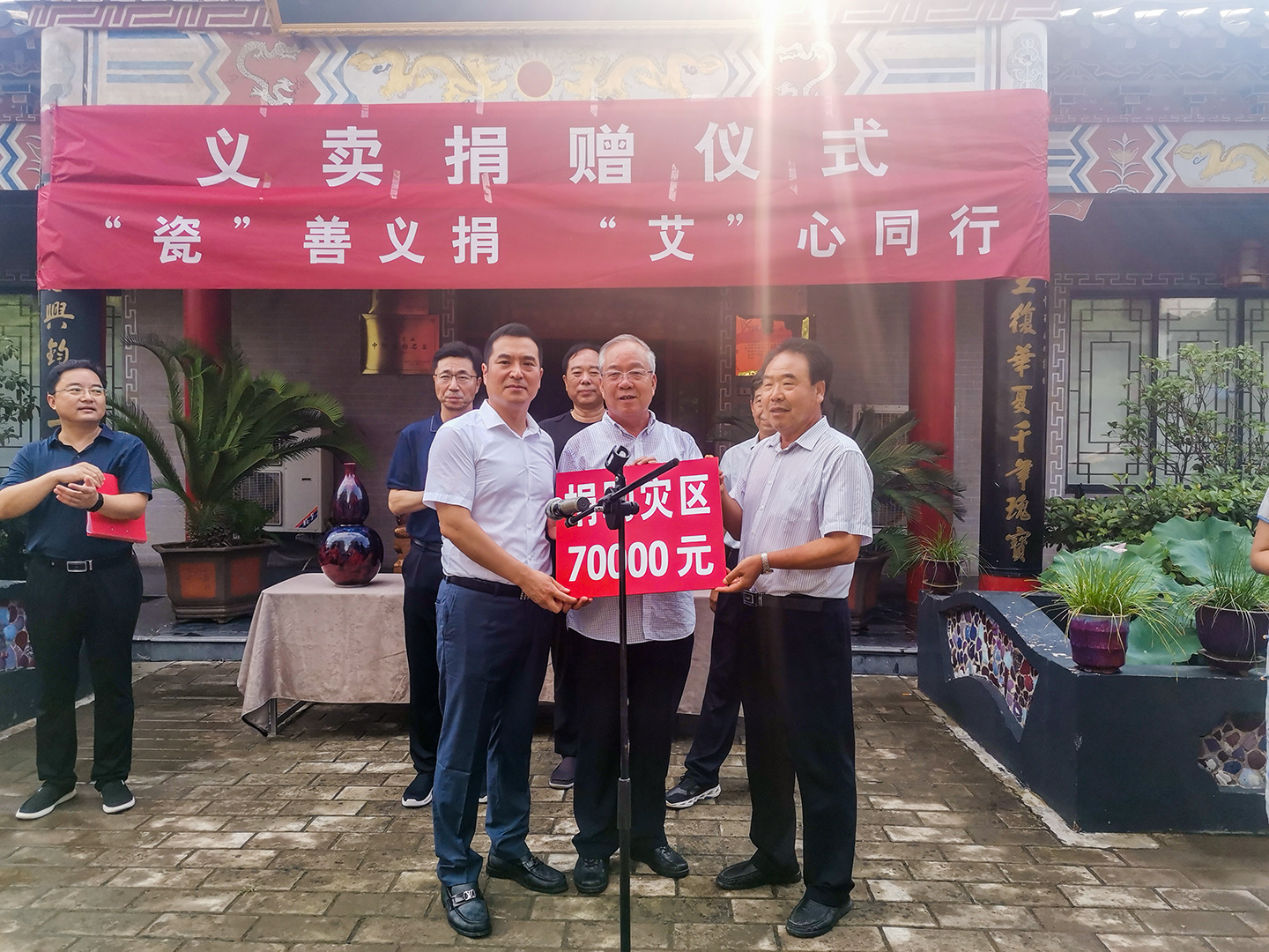 7月24日,公司董事長,總經(jīng)理葉元朋帶領(lǐng)副總經(jīng)理趙超越和營銷第一事業(yè)部總經(jīng)理游一青等一行,參加了郟縣“瓷”善義捐,“艾”心同行義賣活動,公司出資7萬元購買整窯瓷器作品,善款隨即捐贈給了郟縣慈善協(xié)會。同日,公司又籌資10萬元捐贈給河南慈善總會,兩筆善款用于支援災(zāi)區(qū)救援和災(zāi)后重建。