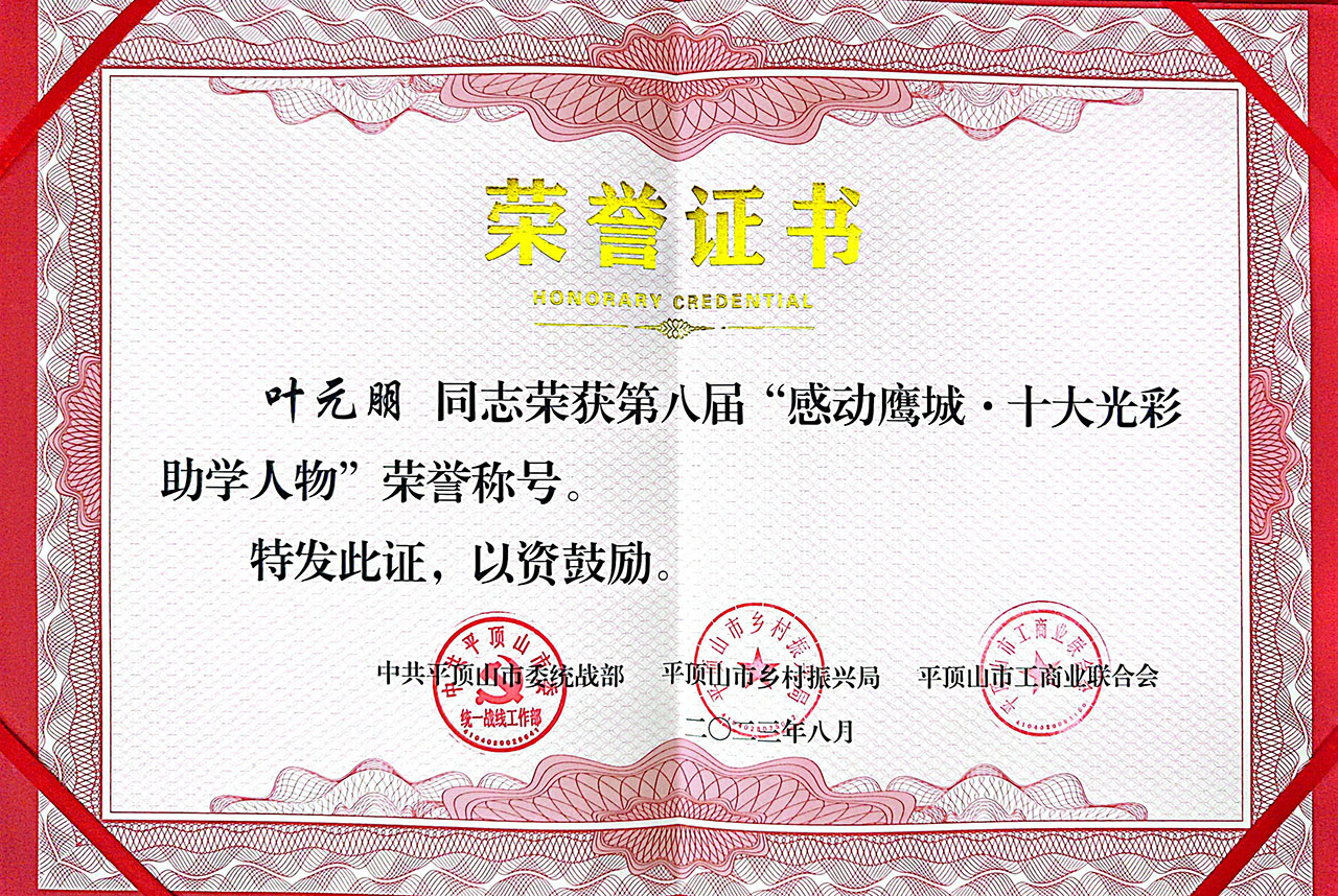 會議宣讀了關(guān)于表揚平頂山市第八屆“感動鷹城·十大光彩助學(xué)人物”的決定等相關(guān)文件,為助學(xué)先進集體和個人進行了頒獎,愛心企業(yè)進行了捐助。在會議上,河南科技股份有限公司董事長葉元朋被授予第八屆“感動鷹城·十大光彩助學(xué)人物”榮譽稱號。